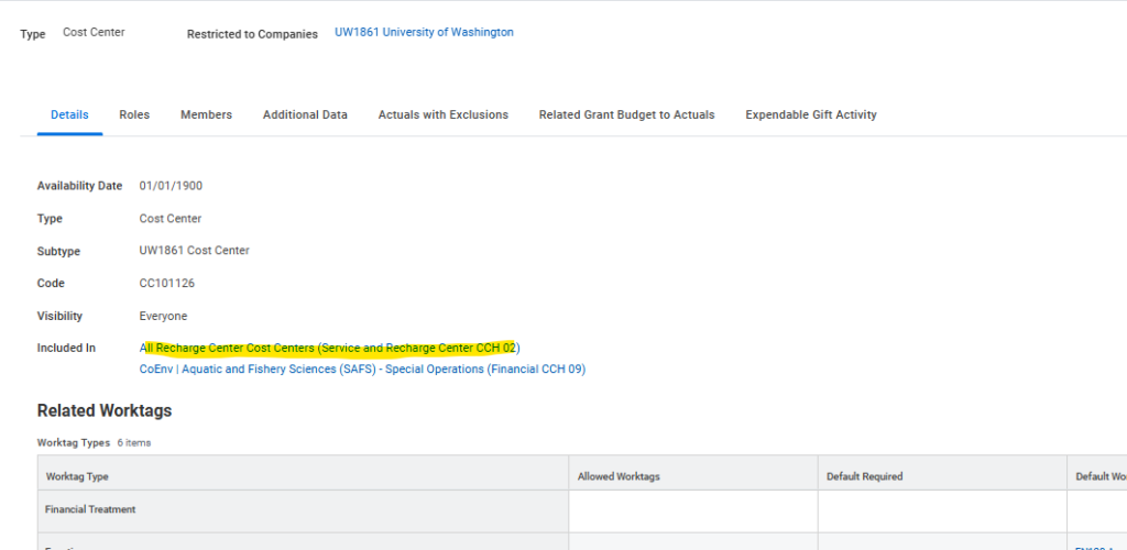 - Details Column- default worktags and cost center hierarchy